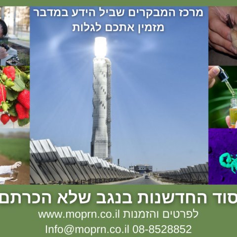 סיורי חדשנות מודרכים במרכז המבקרים בתחנת הניסיונות החקלאית-מו"פ רמת הנגב ותחנות הכוח הסולאריות. מתאים לקהל רחב ולקהל מקצועי. במקום חנות תוצרת הנגב.